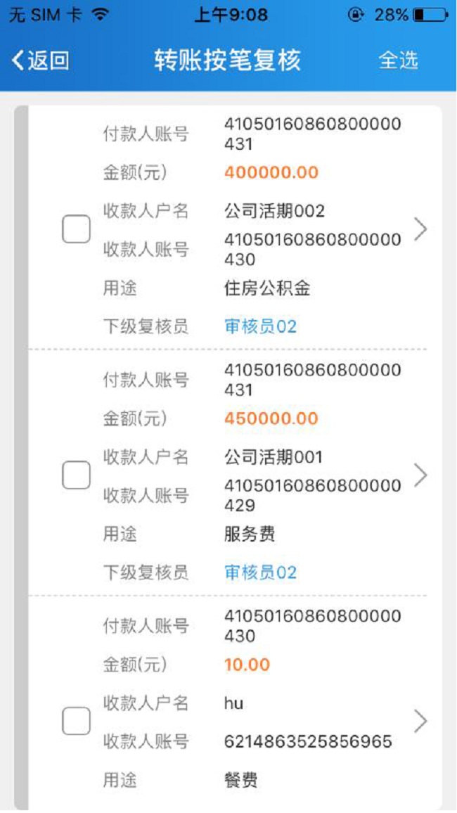 制单员完成制单操作后,复核员可以使用企业手机银行随时进行业务复核。